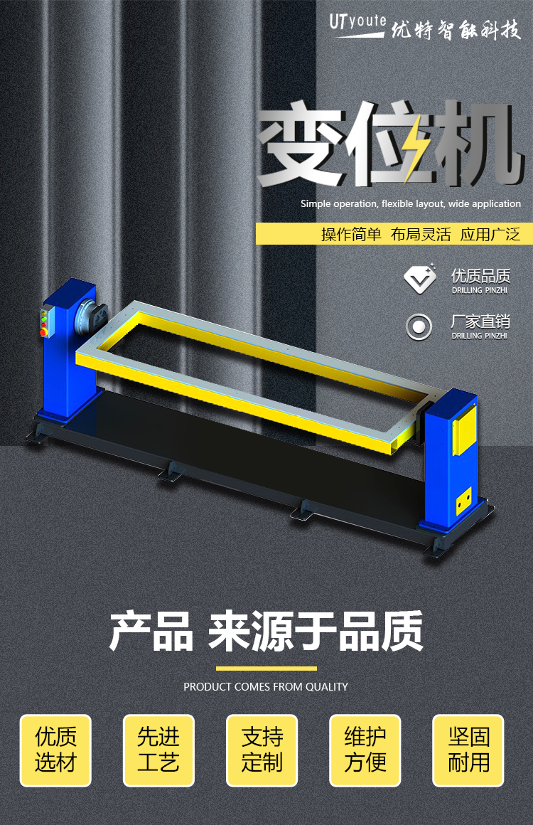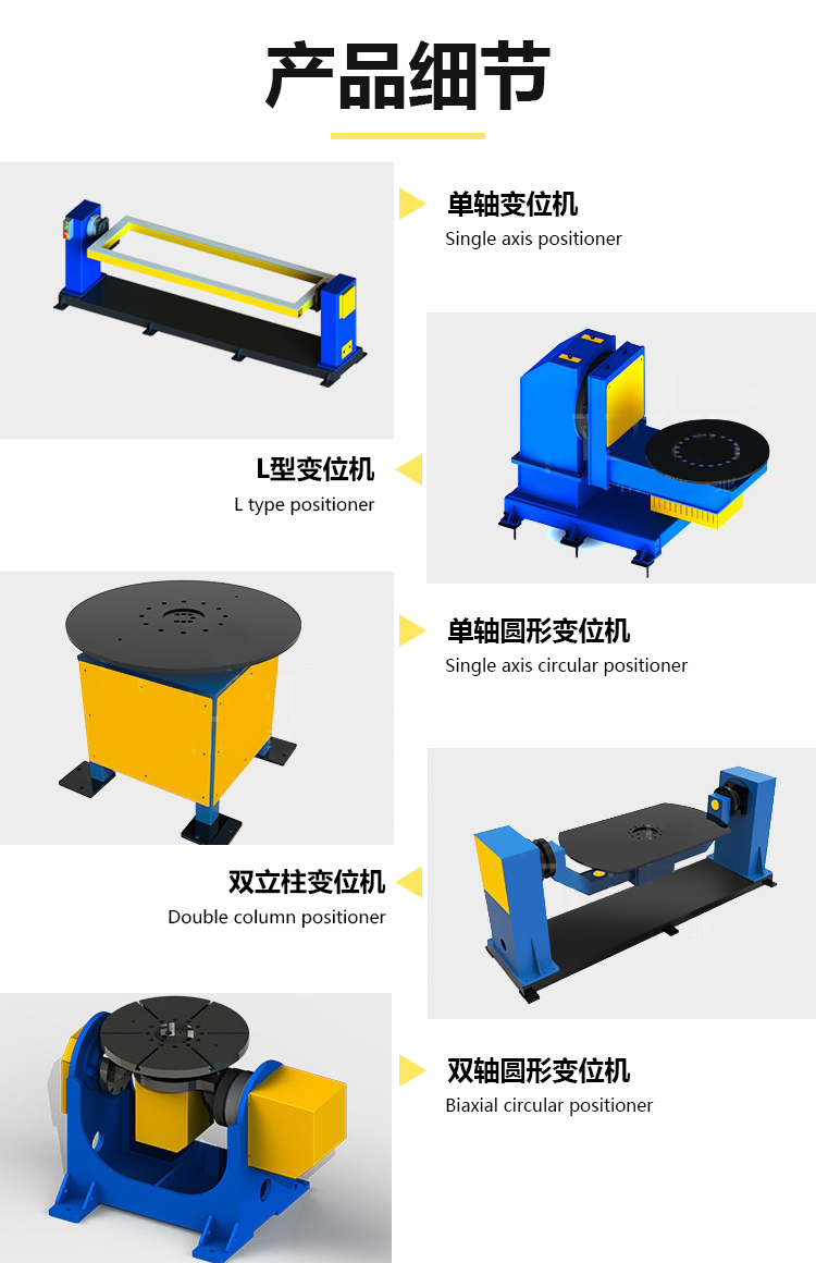 焊接变位机是用来拖动待焊工件,使其待焊焊缝运动至理想位置进行施焊作业的设备。一般说来,生产焊接操作机、滚轮架、焊接系统及其他焊接设备的厂家,大都生产焊接变位机;生产焊接机器人的厂家,大都生产机器人配套的焊接变位机。
